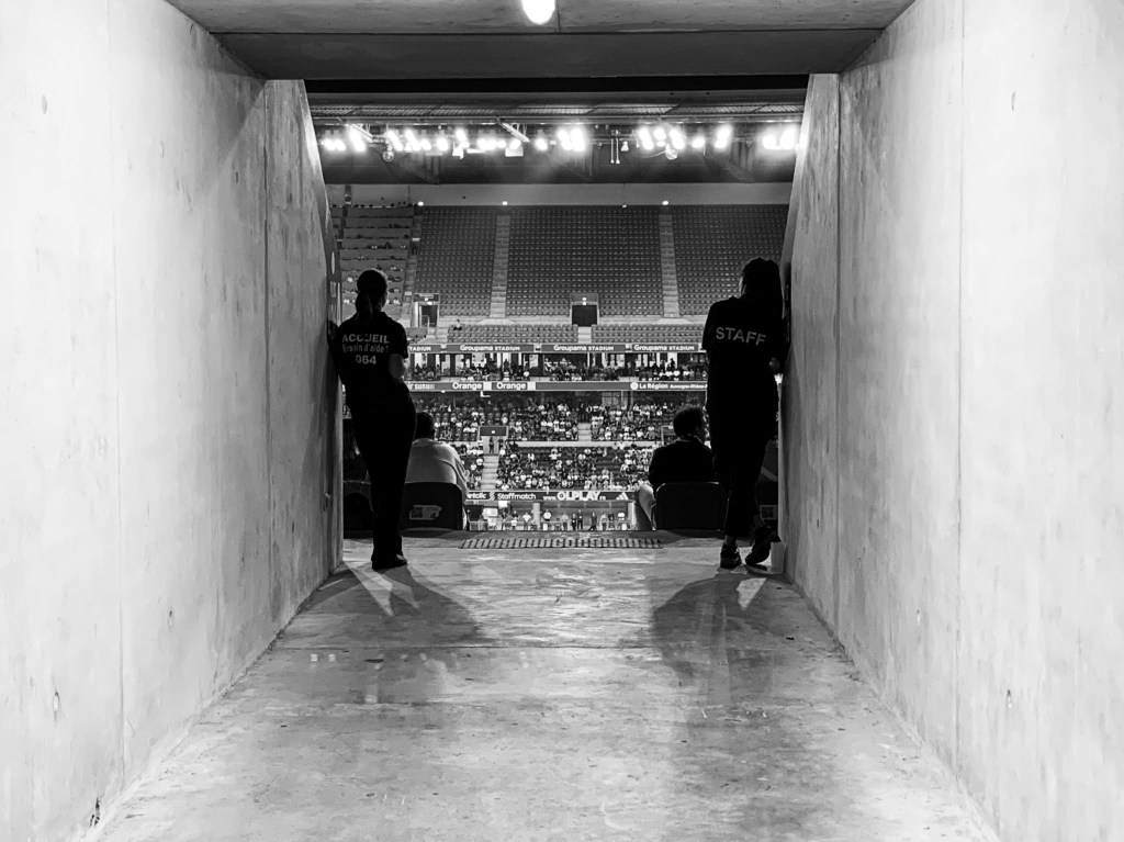 The hardcore OL support was split between the Virage Sud, with the fans who confronted the players two weeks ago at the opposite end, the Virage Nord. They sang, bounced and at one point threw white towels towards the pitch midway through the second half, a symbolic gesture perhaps?