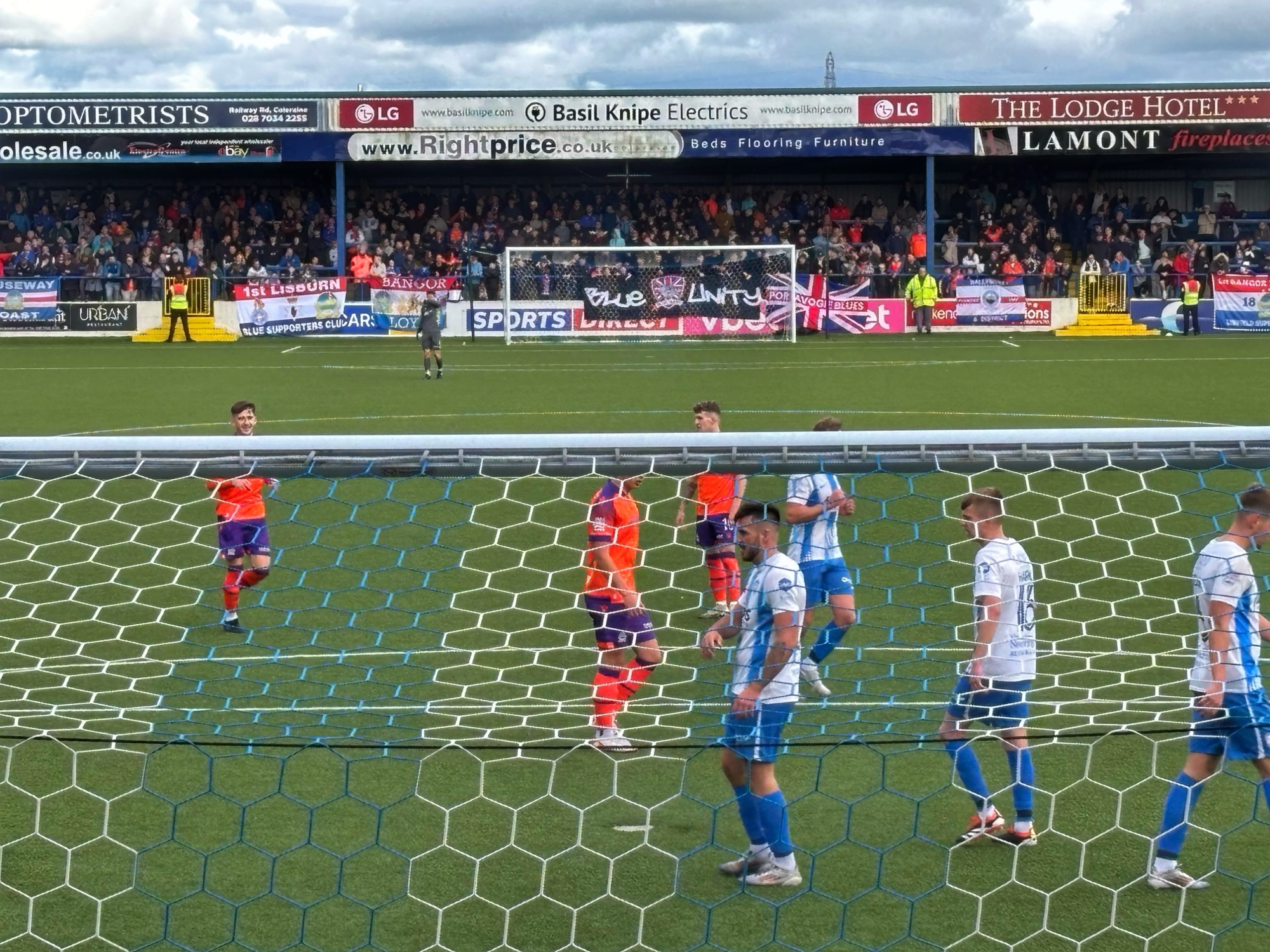 Putting aside the huge space between the main stand and the edge of the pitch, this was a proper ground, reminiscent of many English grounds twenty years ago. Two covered terraces at each end, which provided the acoustics for the fans, especially the away voices who boasted about being top of the league, and likely to stay there as long as they avoided defeat, with the surprise packages of Ballymena United and Dungannon Swifts having a chance to top the table if they lost.
